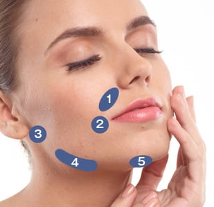 ①頬(法令線のあたり)